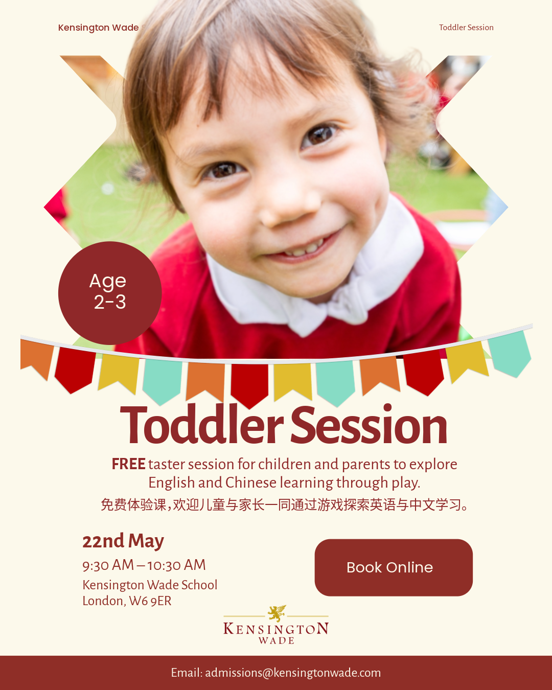 Booking is essential, book below or get in touch via admissions@kensingtonwade.com to find out more!